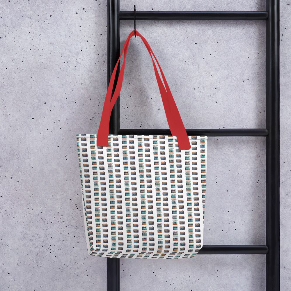 “Hey there, you sexy over-packer! 🌶️ Sick of those dull, lifeless totes that scream ‘meh’? Slide your wild side into our All-Over Print Tote, the only bag scandalous enough for your equally provocative designs. Whether you’re smuggling questionable life choices, a family-sized tub of lard, or just the usual – laptops and questionable notebooks, this little number can handle it… Up to 44lbs of your shady crap, to be exact! 🍑💥
